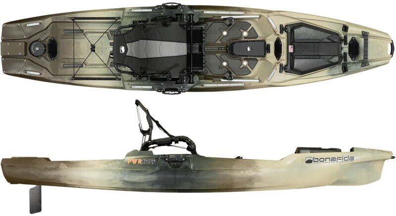 Introducing the Bonafide PWR 129 - an innovative fishing kayak optimized for power through an intelligent design focused on motorization and electronics integration. This stable, efficient kayak gives anglers the freedom to go further and stay out longer on the water. This is ultimate fishability whether through paddle or power.